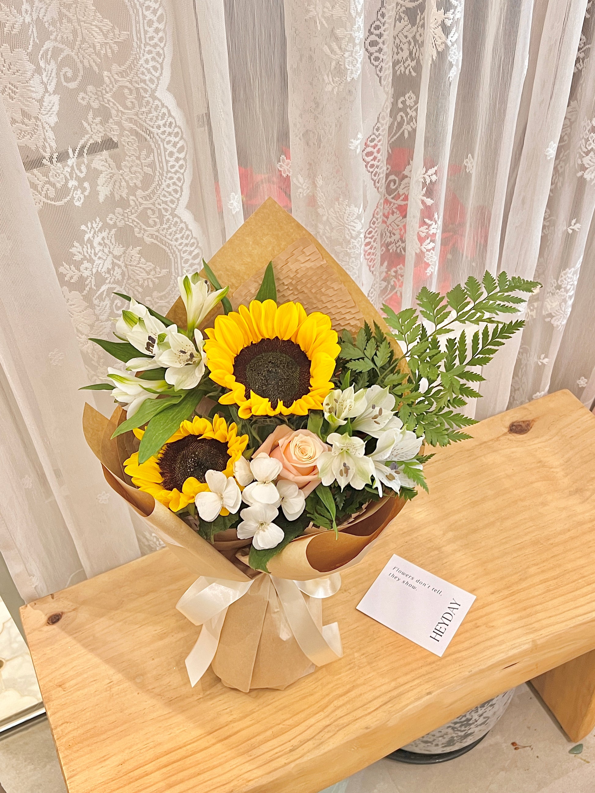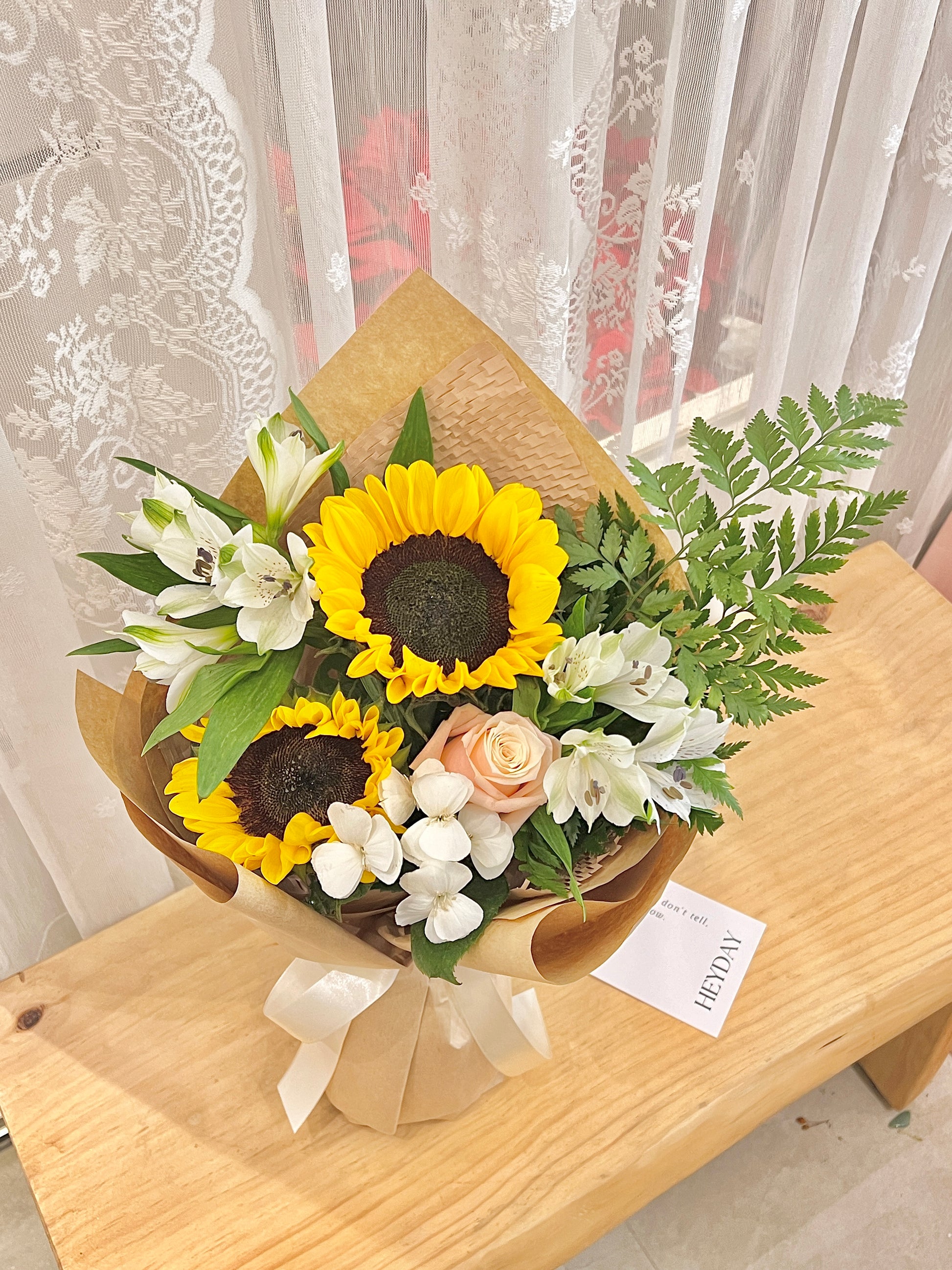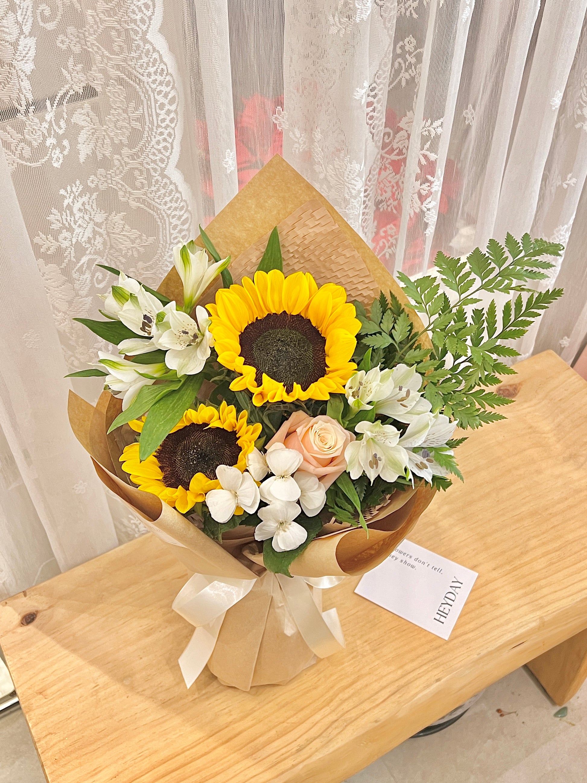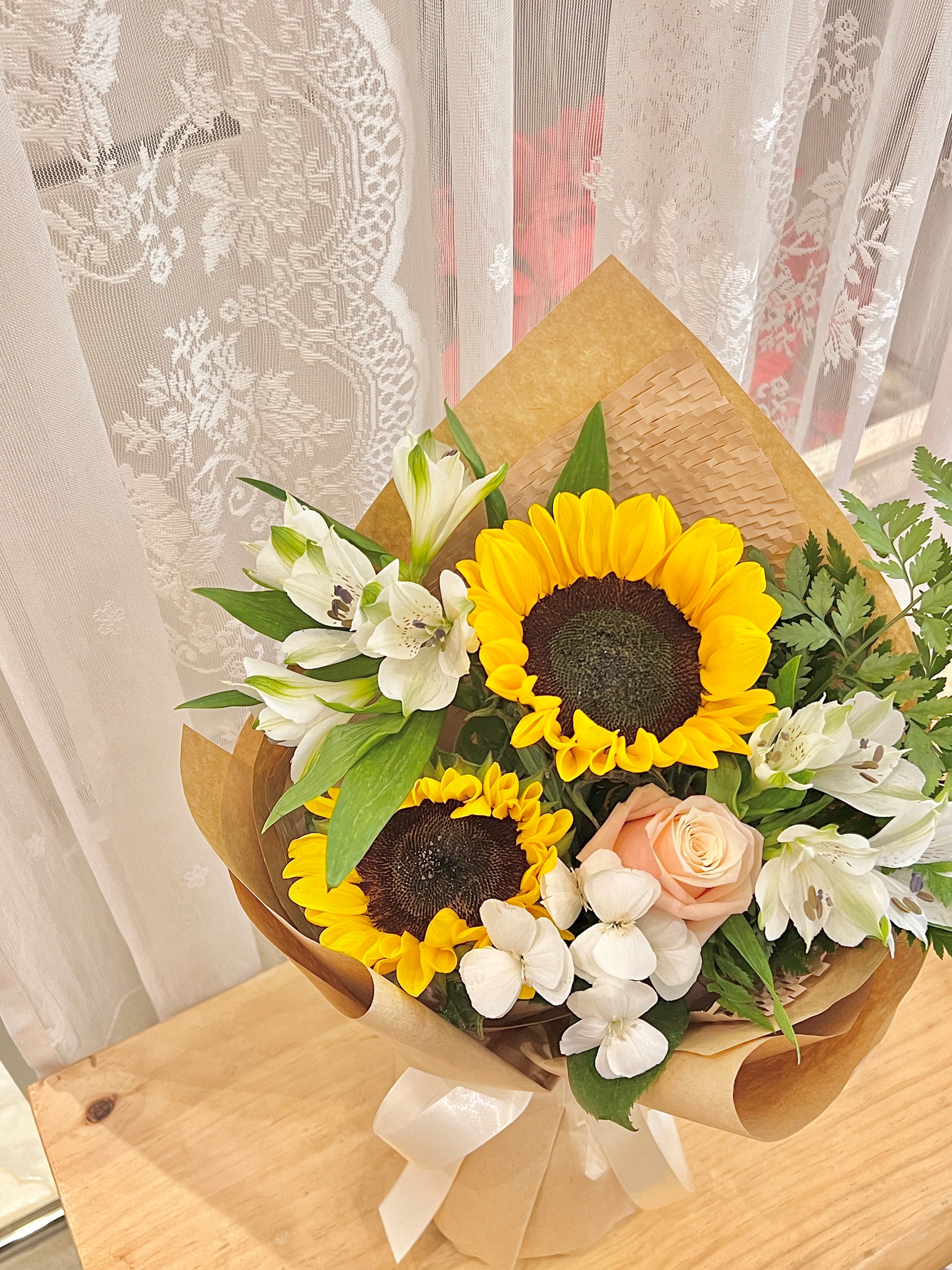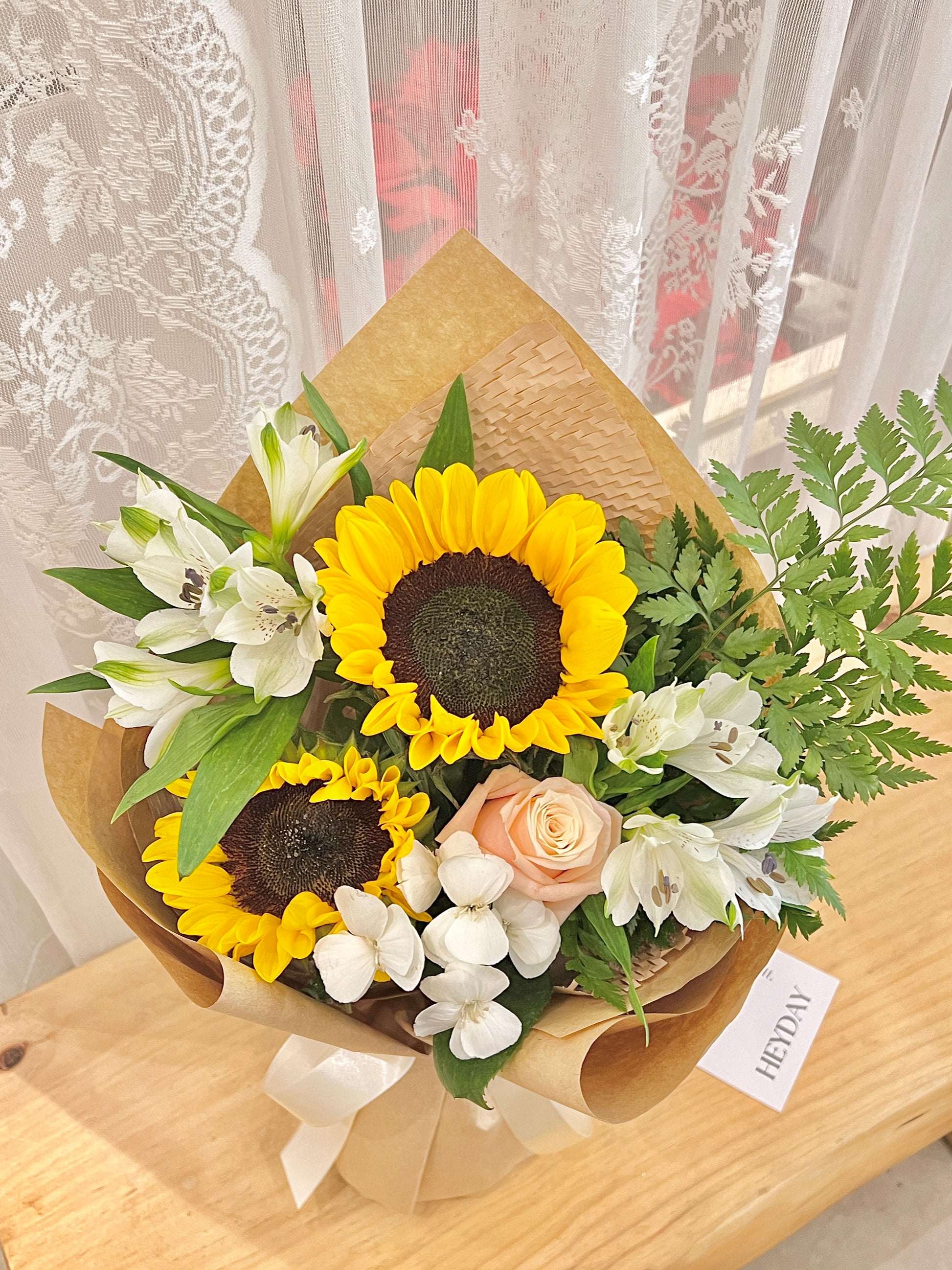 每一束鮮花都是獨一無二的,由花藝師用當天最新鮮的花材手工製作而成。因此,它可能與圖片上的略有不同,但它仍然非常美麗。