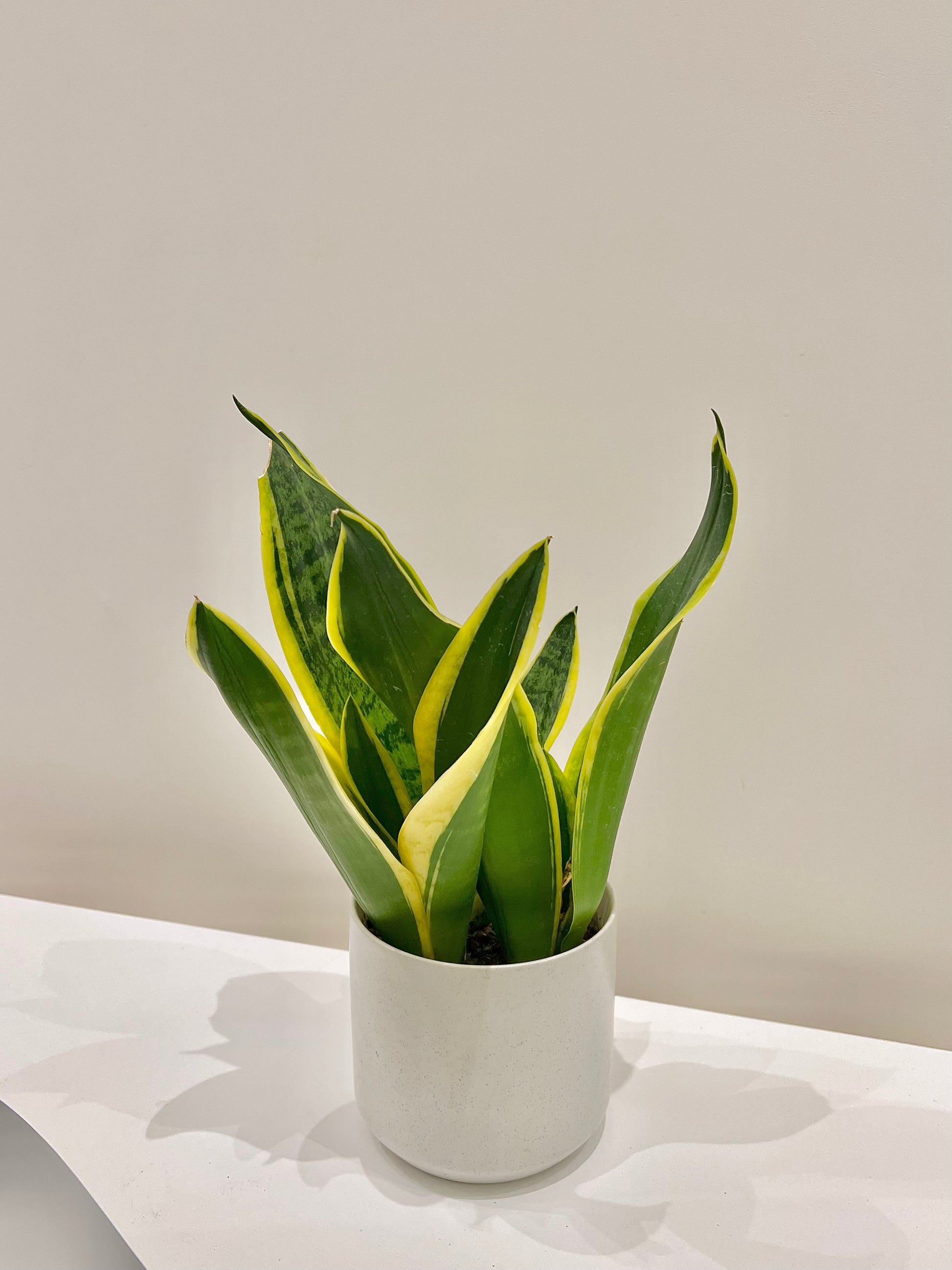 - Don’t overwater. Too much water is this plant’s weakness. Place a snake plant in a well-drained pot to avoid overwatering, as it can cause rotting. Only water the soil when it’s completely dry. 不要過度澆水。太多水是這種植物的弱點。將 虎尾蘭放在排水良好的盆中,過度澆水可能會導致 植物腐爛。只有在土壤完全乾燥時才澆水。